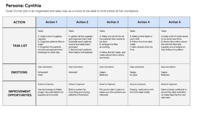Cynthia’s Journey map just shows the ton of work that need to be done on a daily basis by these health workers and so it will do a lot of good to create a design that will help make managing their patients document easier and by extension their jobs in general.